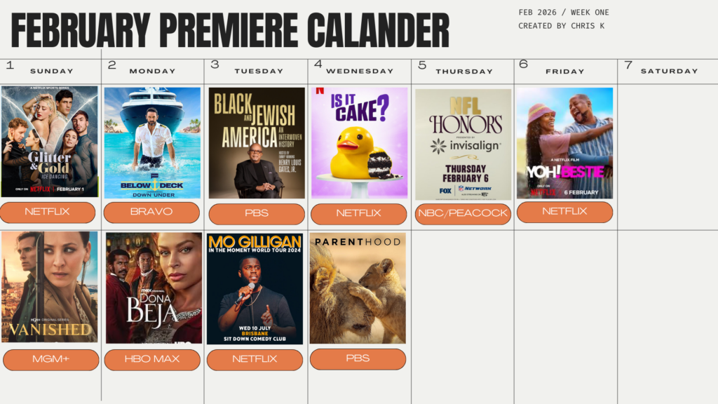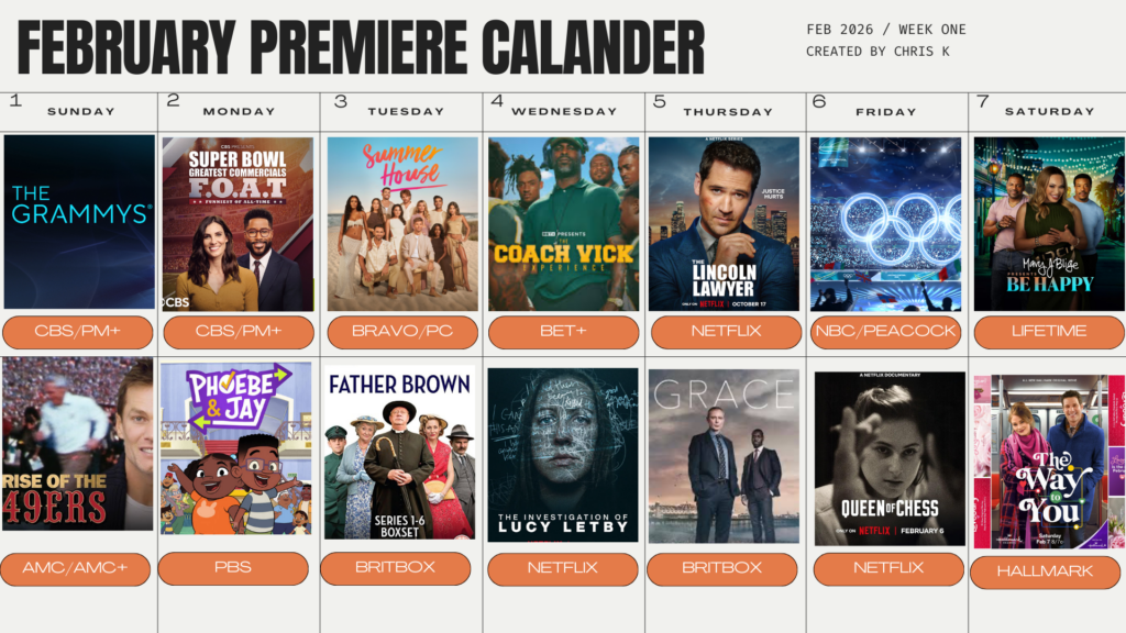 A new week means fresh film and TV releases! Get ready for an updated calendar of premiere dates, covering all the must-watch new movies, new TV shows, and returning favorites across broadcast, theater, streaming, and cable for the week of February 1st-7th